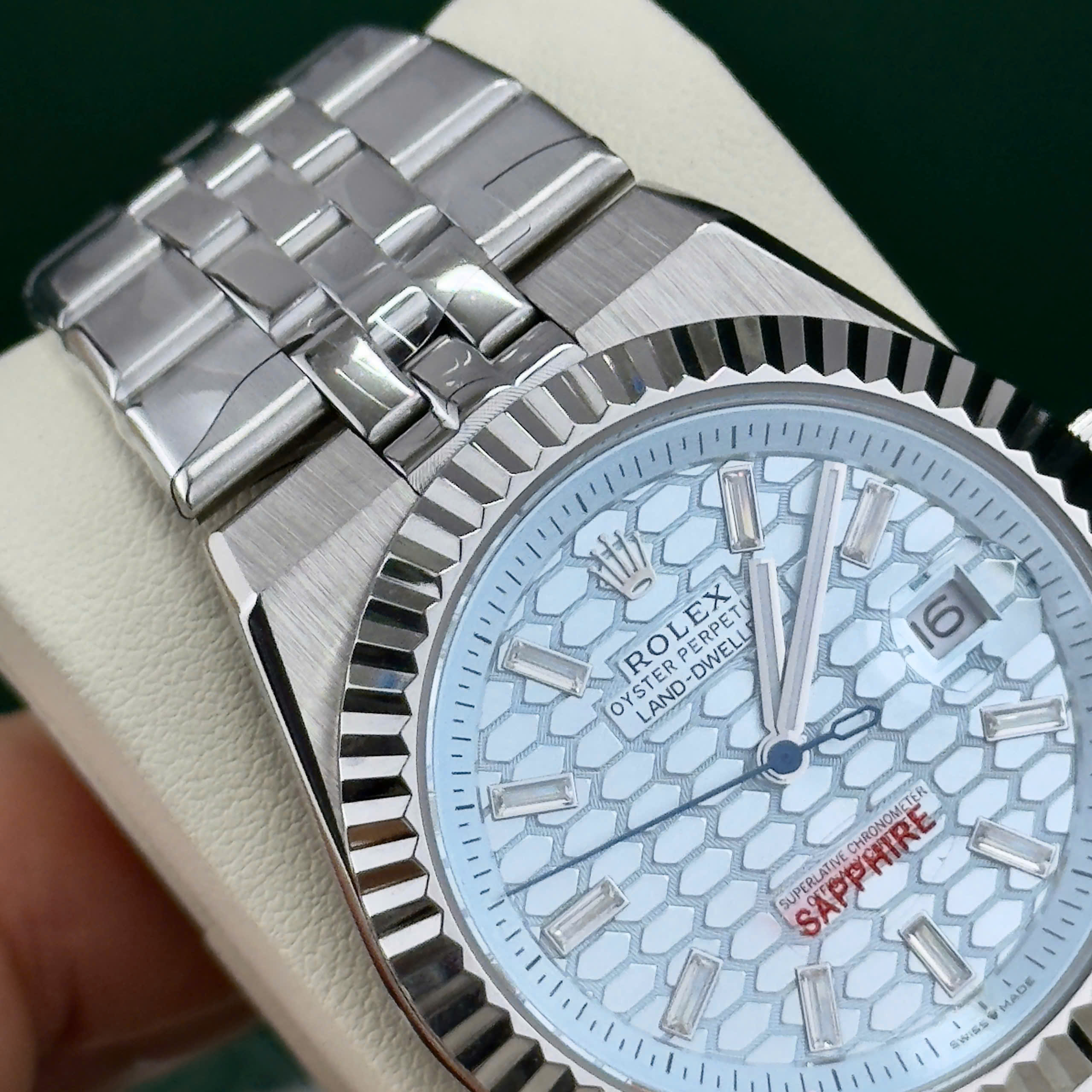 Đồng hồ Rolex Land – Dweller nam xanh blue máy cơ nhật giá rẻ fake cao cấp 41mm