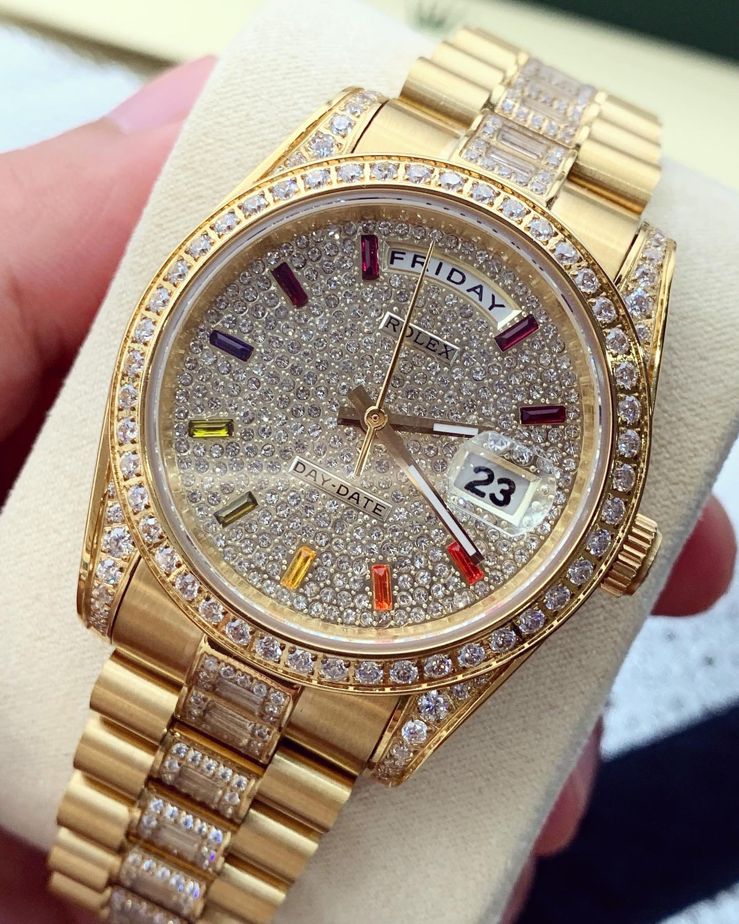 Đồng hồ Rolex nam đính đá Rolex Day-Date Full Diamond Super Fake Nhật 38mm