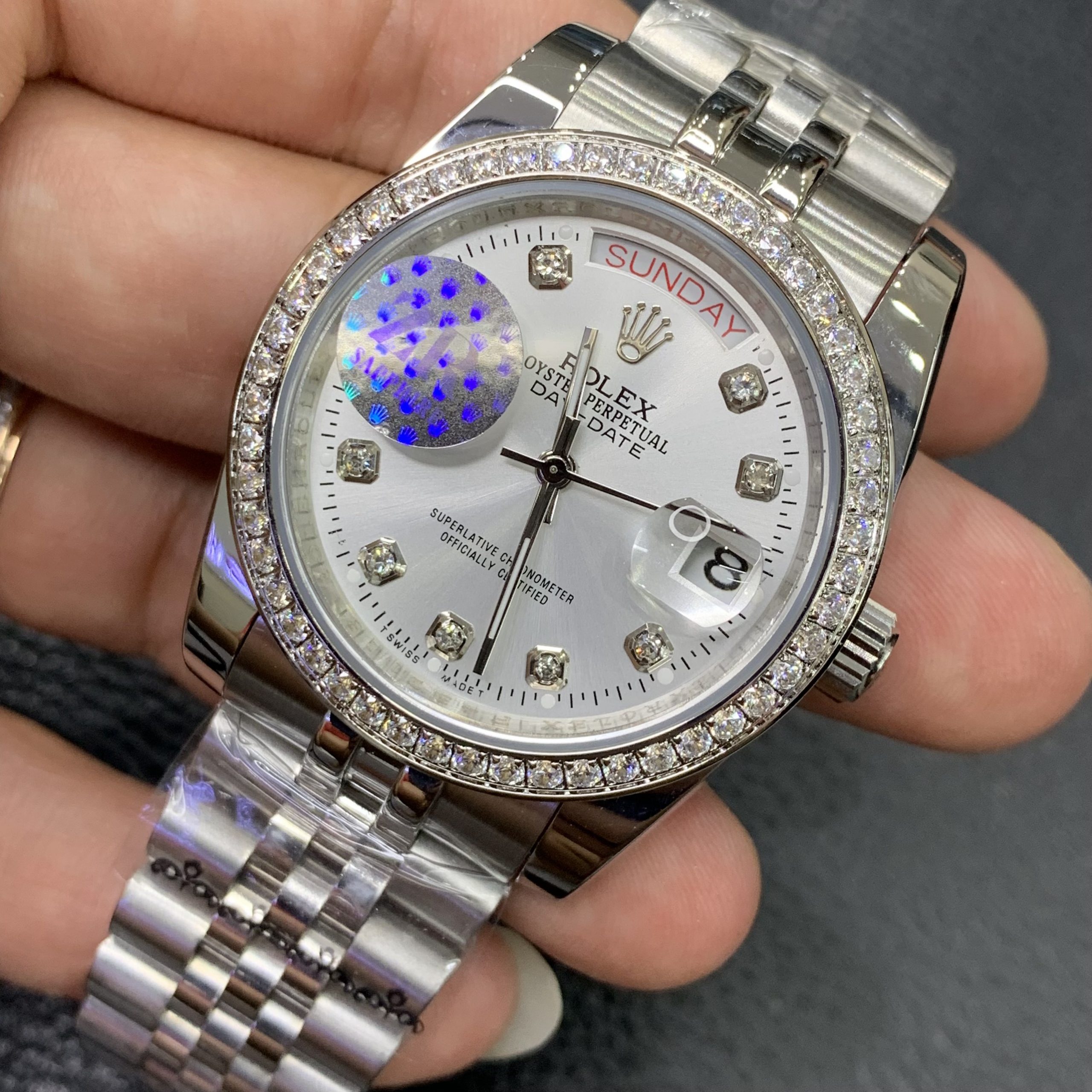 Đồng hồ Rolex nam đính đá Rolex Day Date Steel Watch super fake