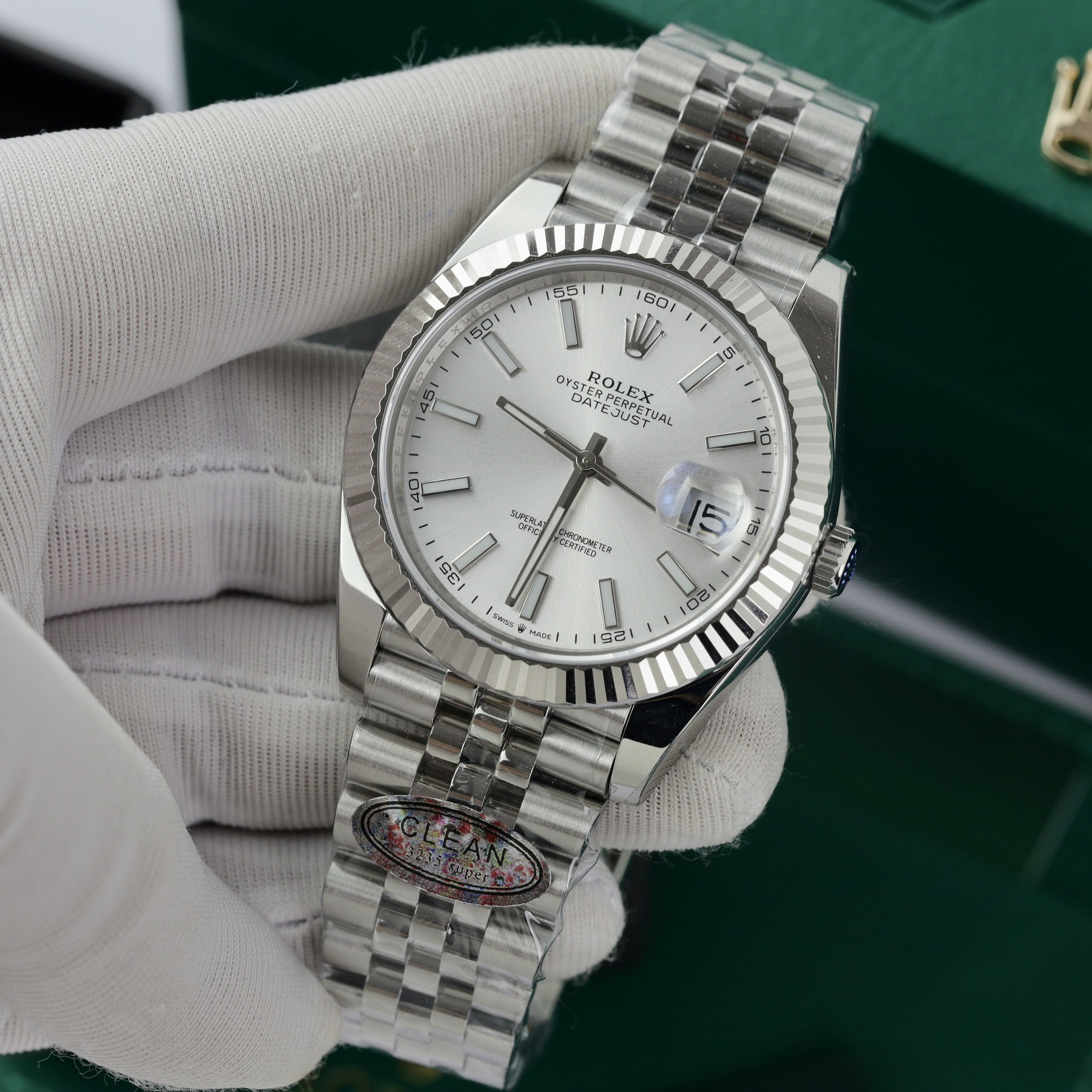 Đồng hồ Rolex nam Rep 11 DateJust 3235 Clean cọc số dạ quang 41mm