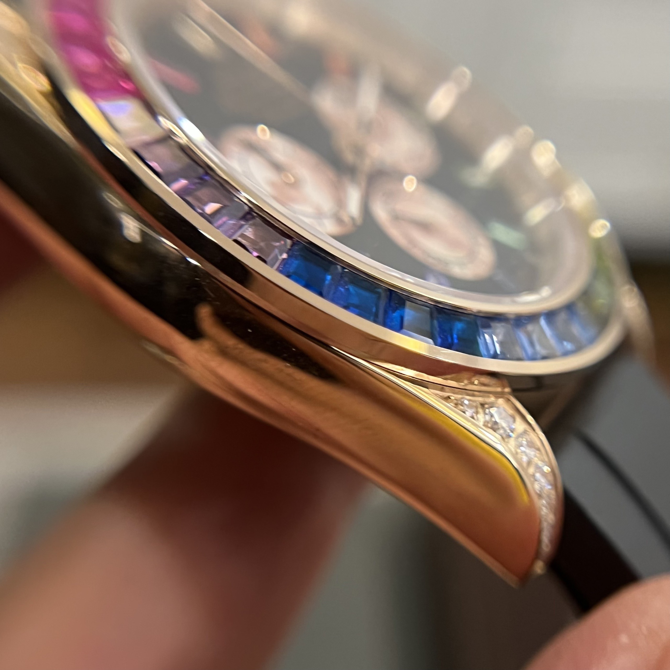 - Đồng hồ Rolex nam máy cơ dòng Rolex Daytona Rainbow thiết kế các vạch số nhiều màu sắc
