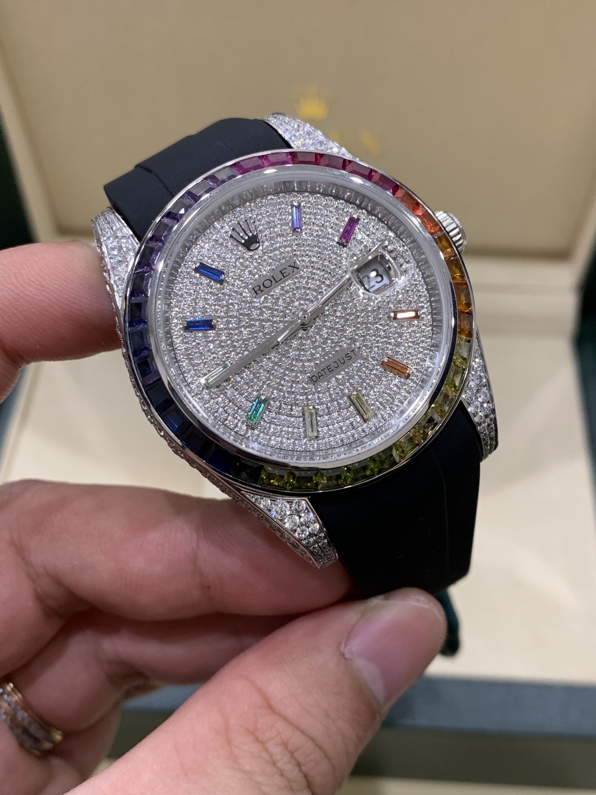 Đồng hồ Rolex nam Siêu Cấp Rolex Full Diamond 7 Sắc Replica 1:1