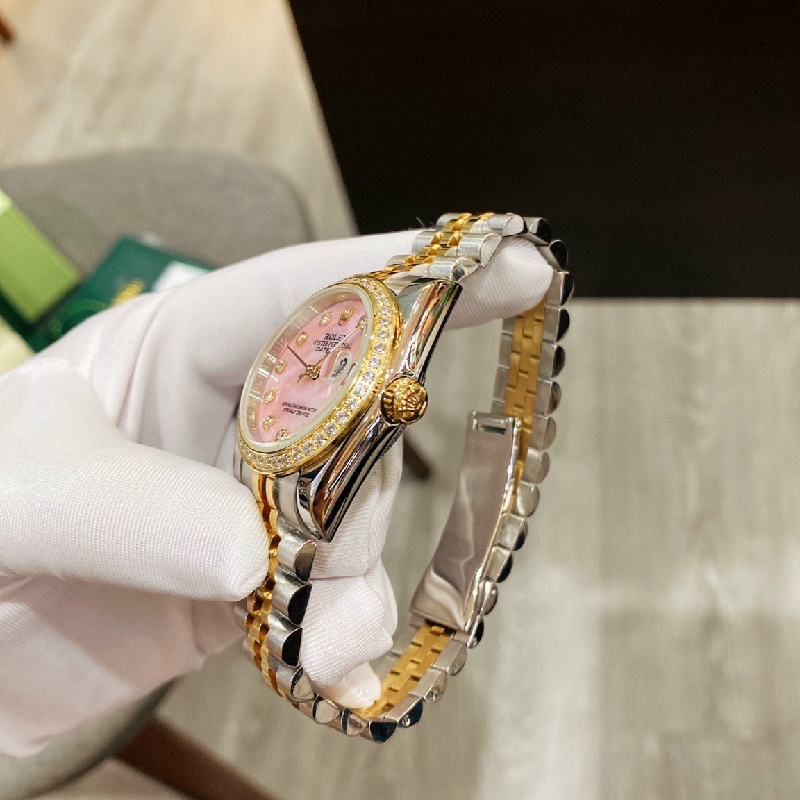 Đồng hồ Rolex nữ đính đá mặt màu hồng