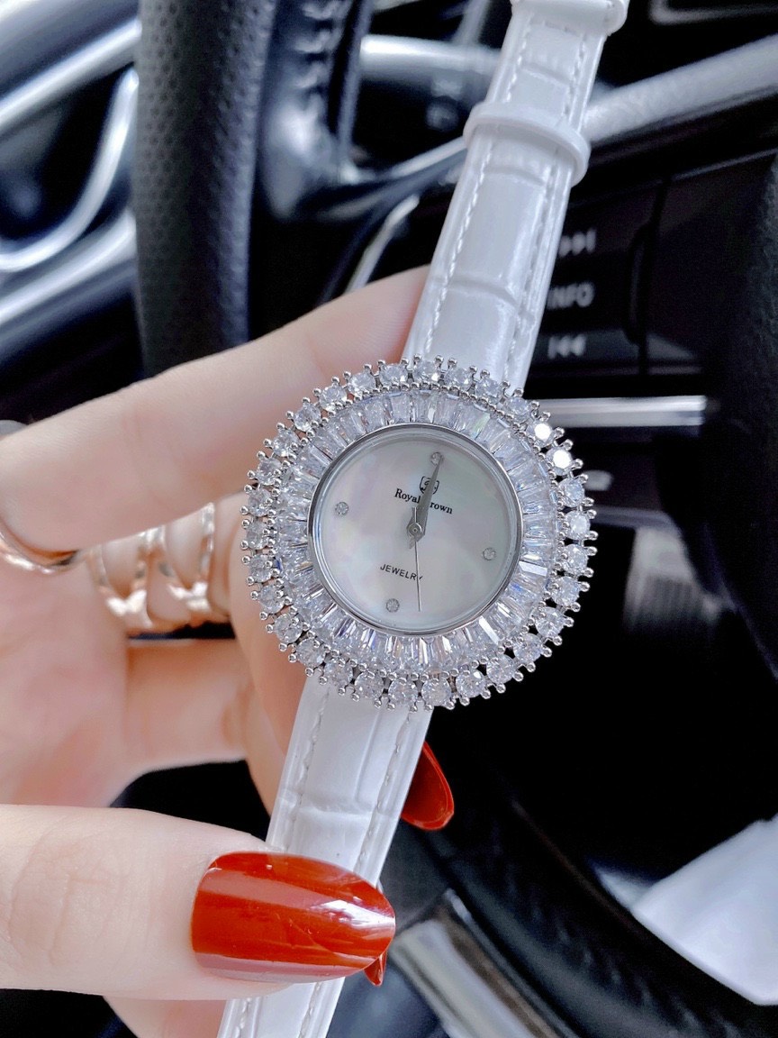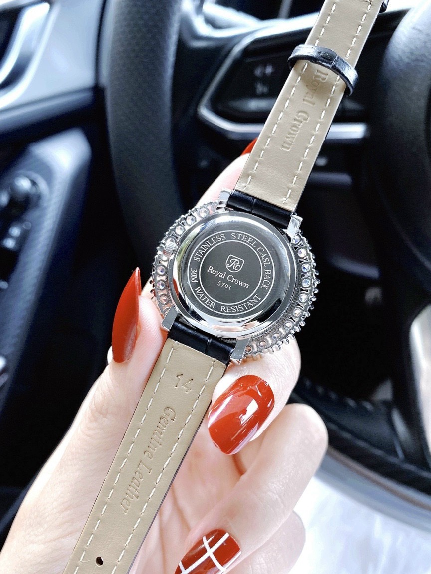 Đồng hồ Royal Crown nữ đính đá dây da 2 màu RC5701 36mm