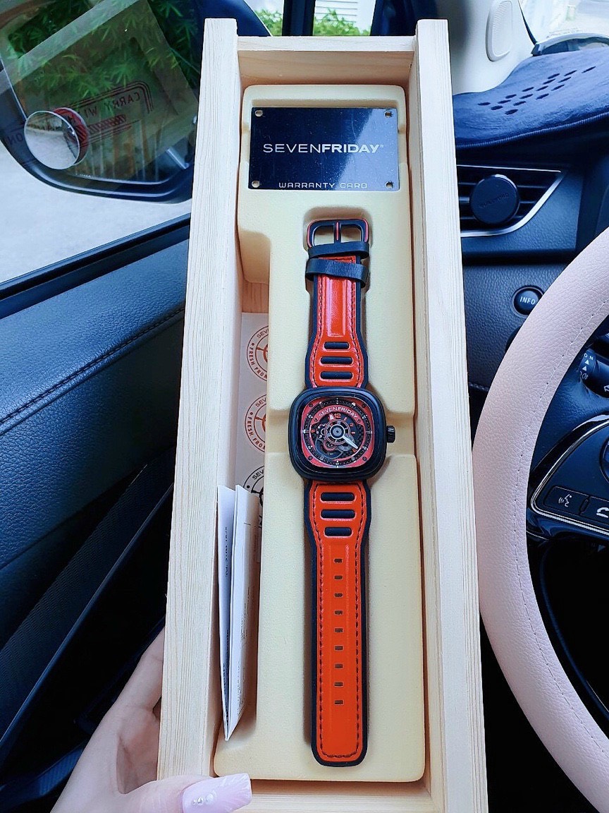 Đồng hồ SevenFriday dây da màu đỏ P3B/06 máy cơ Automatic 44mm