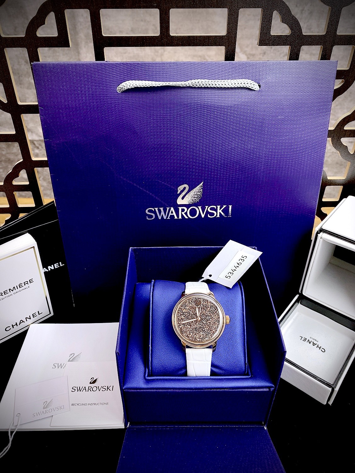Swarovski, thương hiệu pha lê Áo nổi tiếng, mở rộng sang thị trường đồng hồ với thiết kế sang trọng và thanh lịch.