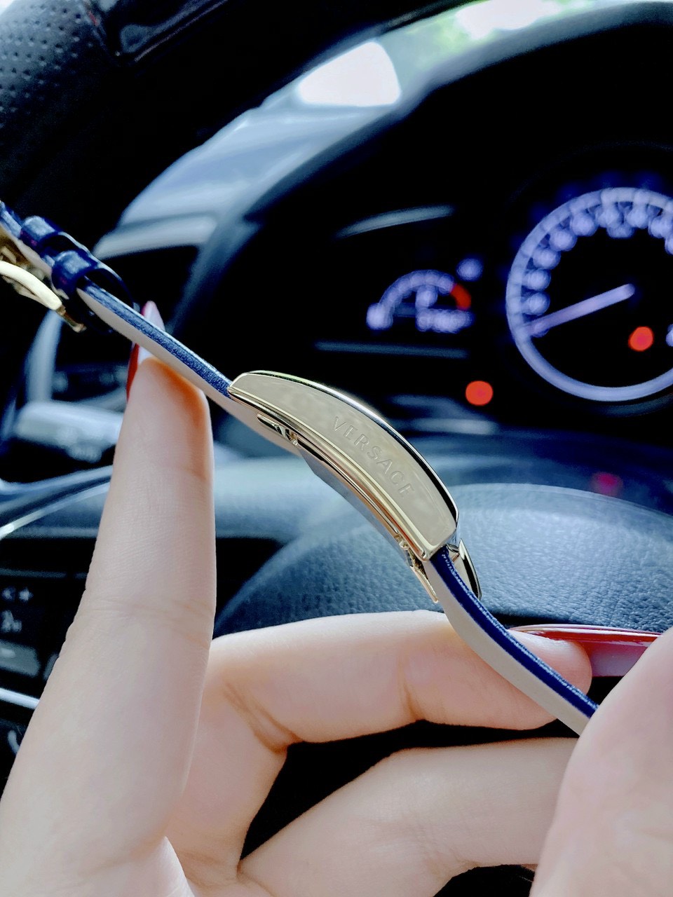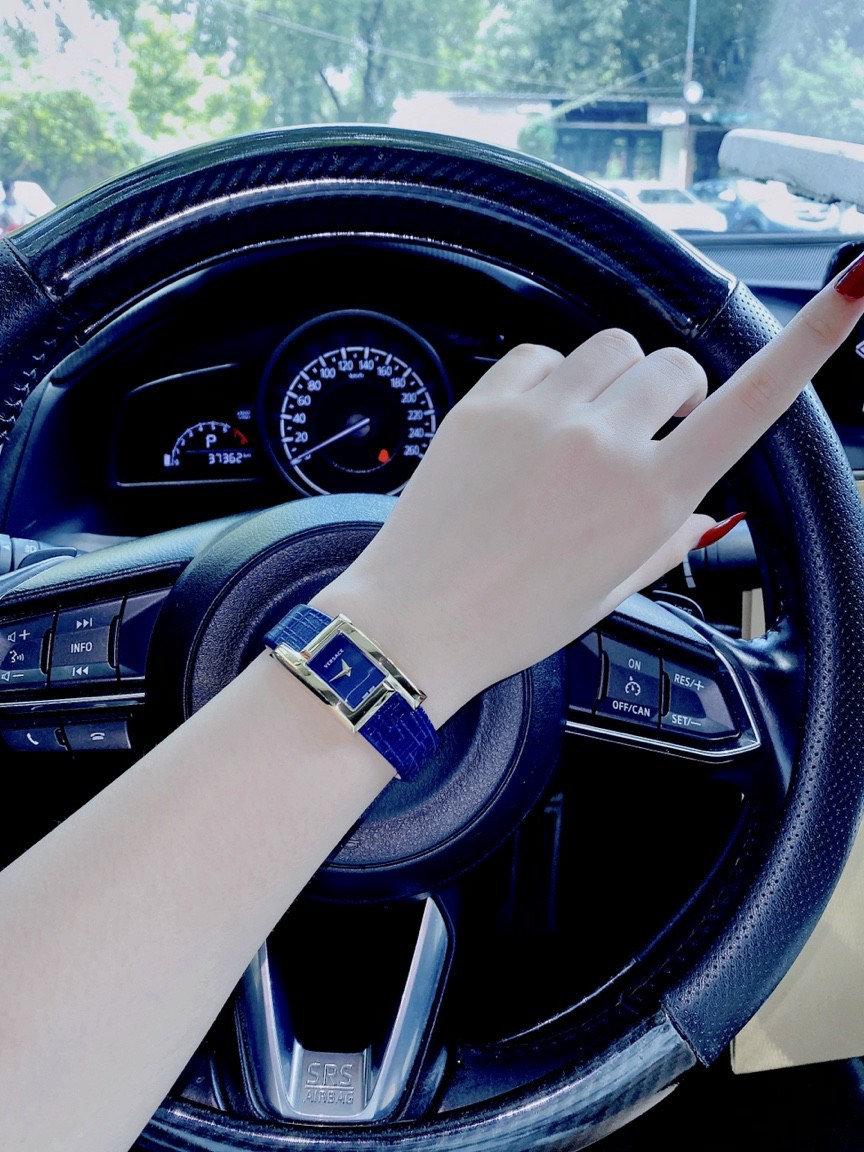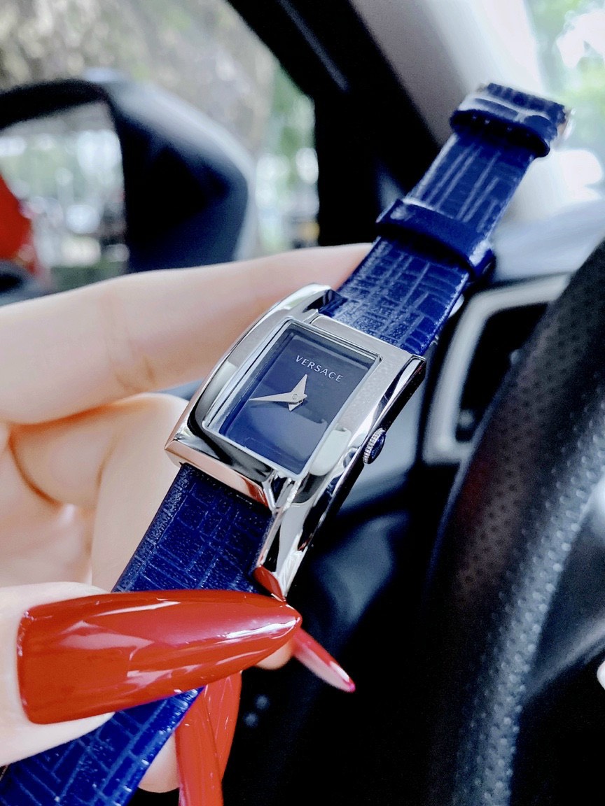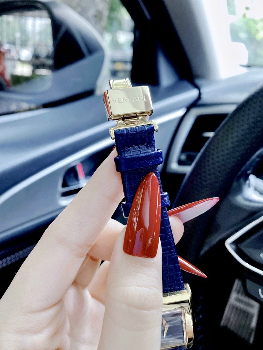 Đồng hồ Versace Greca Icon nữ siêu cấp dây da màu xanh dương
