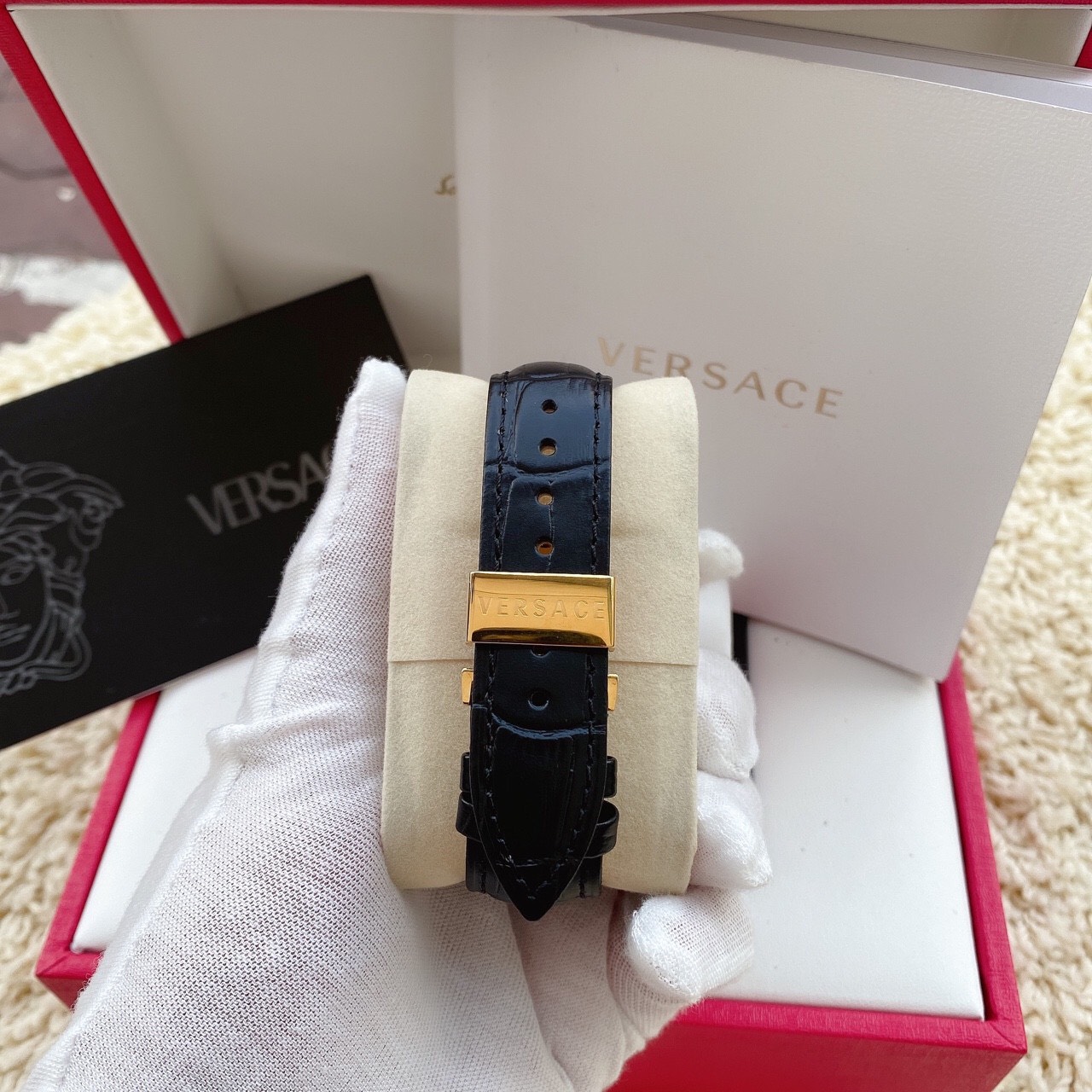 - Đồng hồ Versace nam dây da bản replica đẹp nhất thị trường, viền khắc laser thương hiệu.