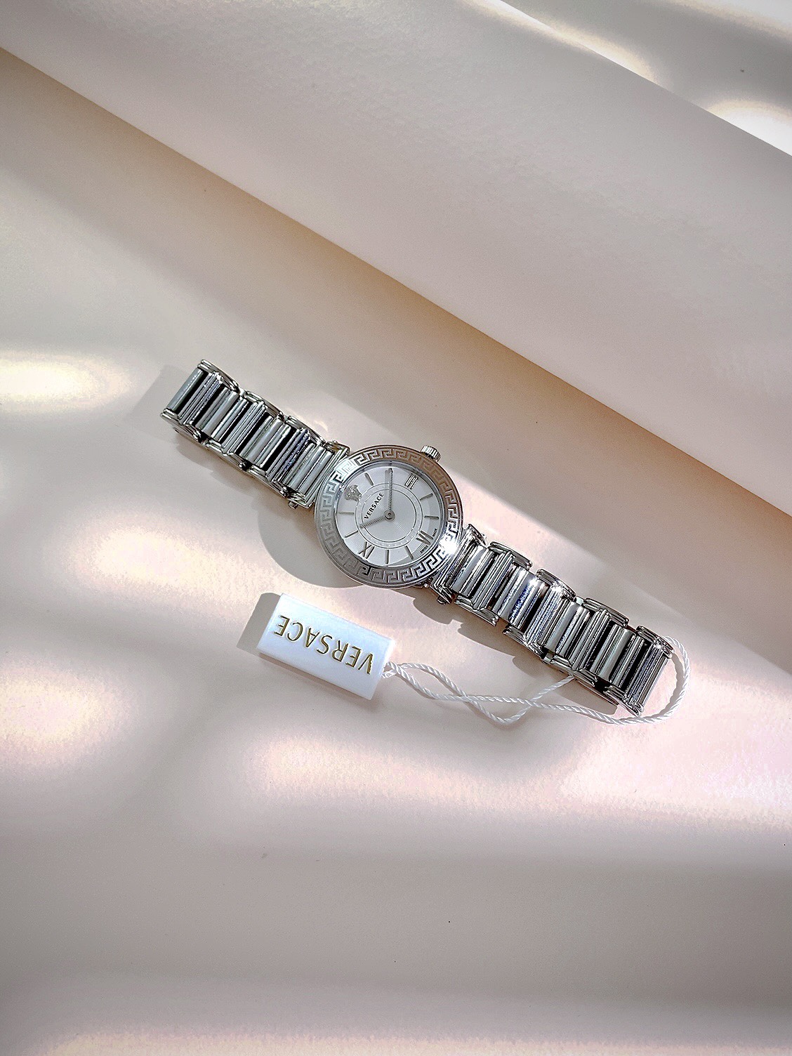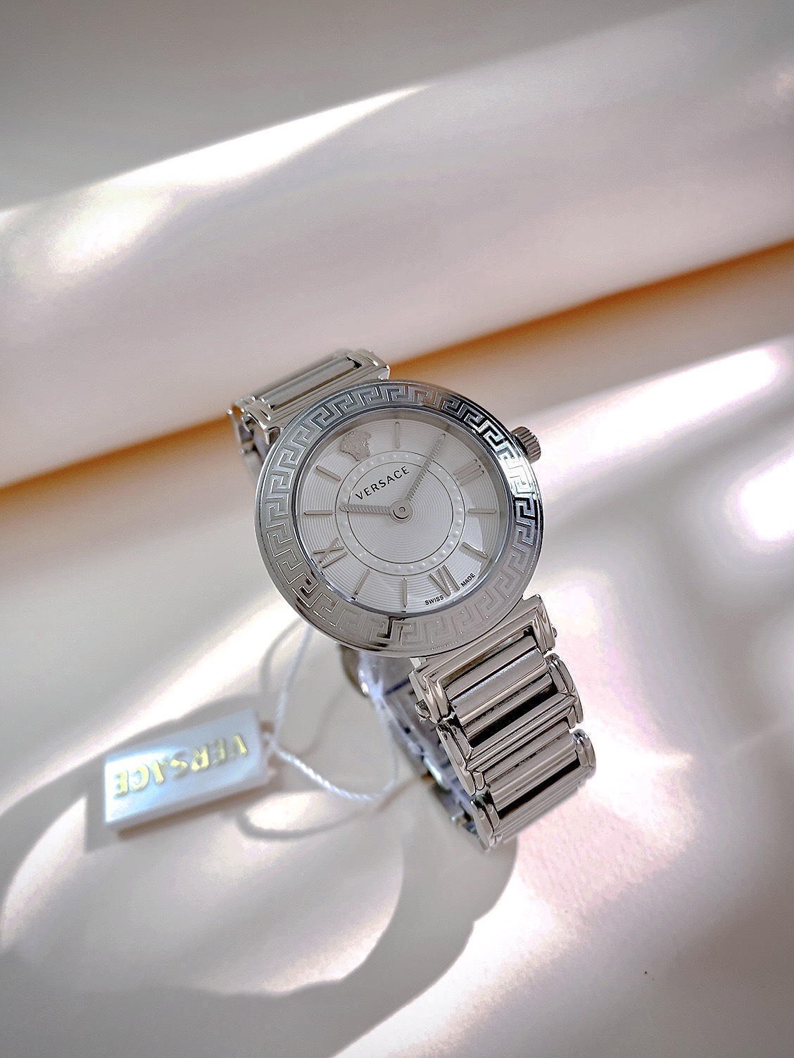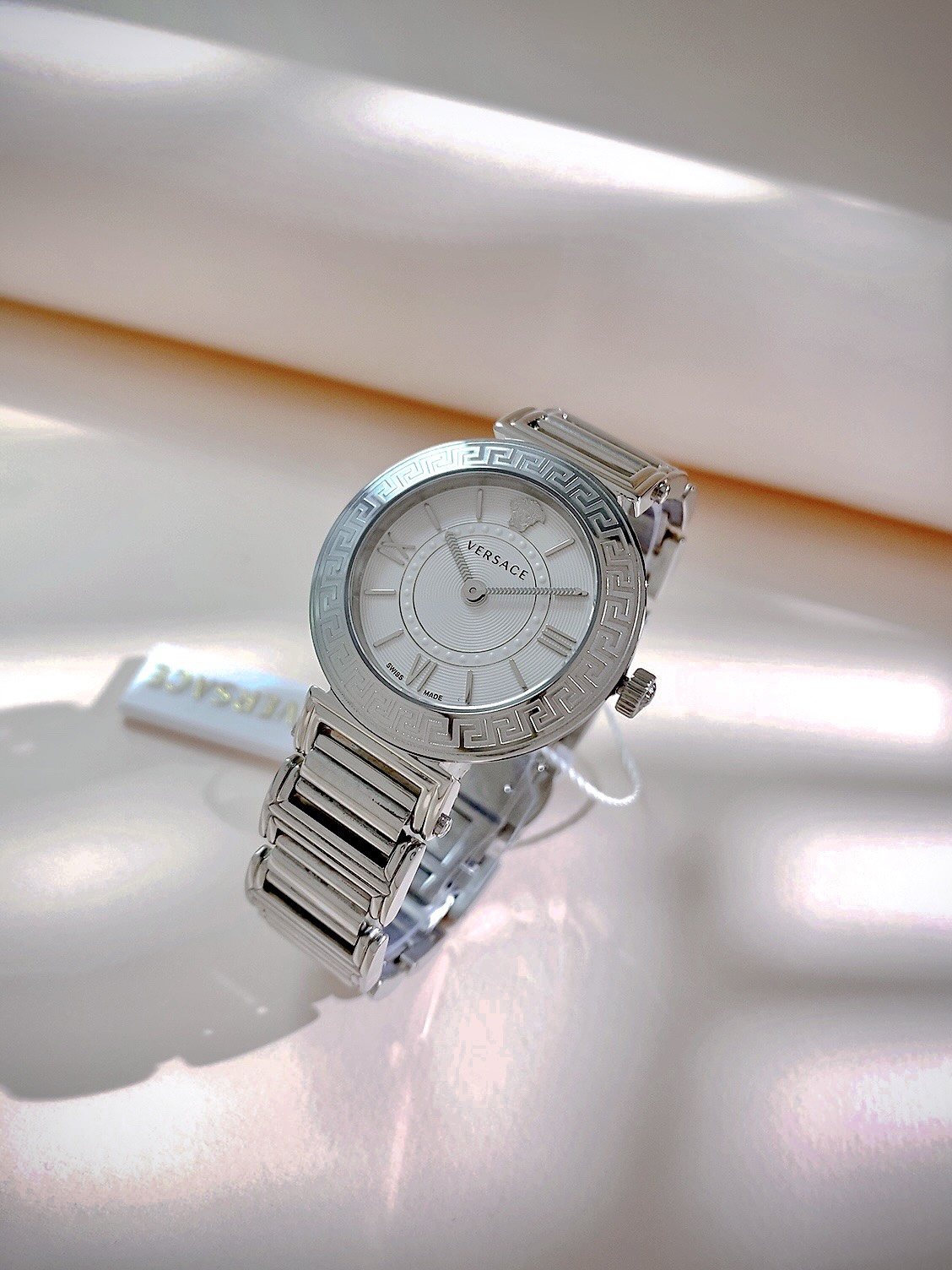 Đồng hồ Versace Tribute nữ mặt trắng dây kim loại Rep 11 35mm