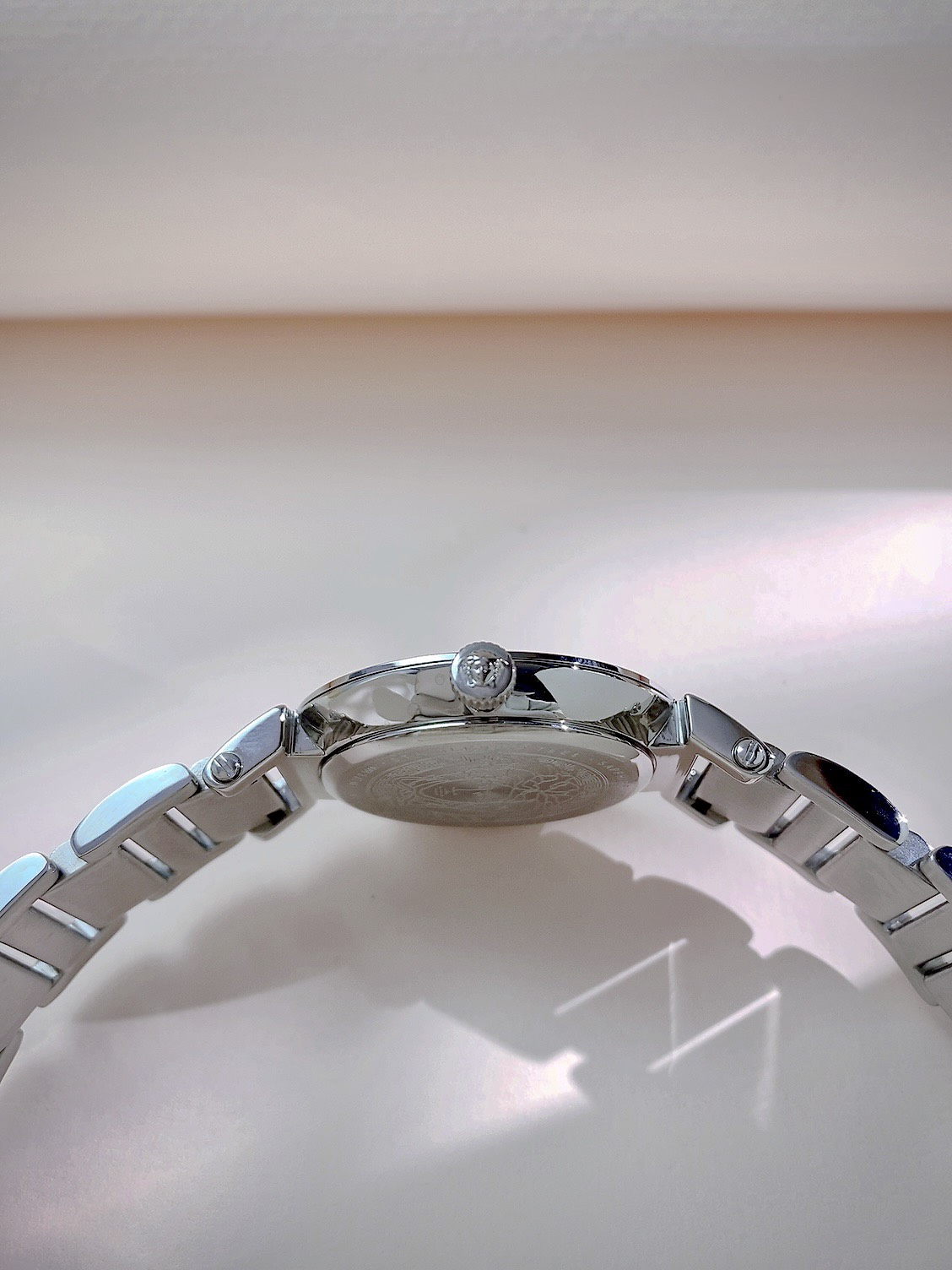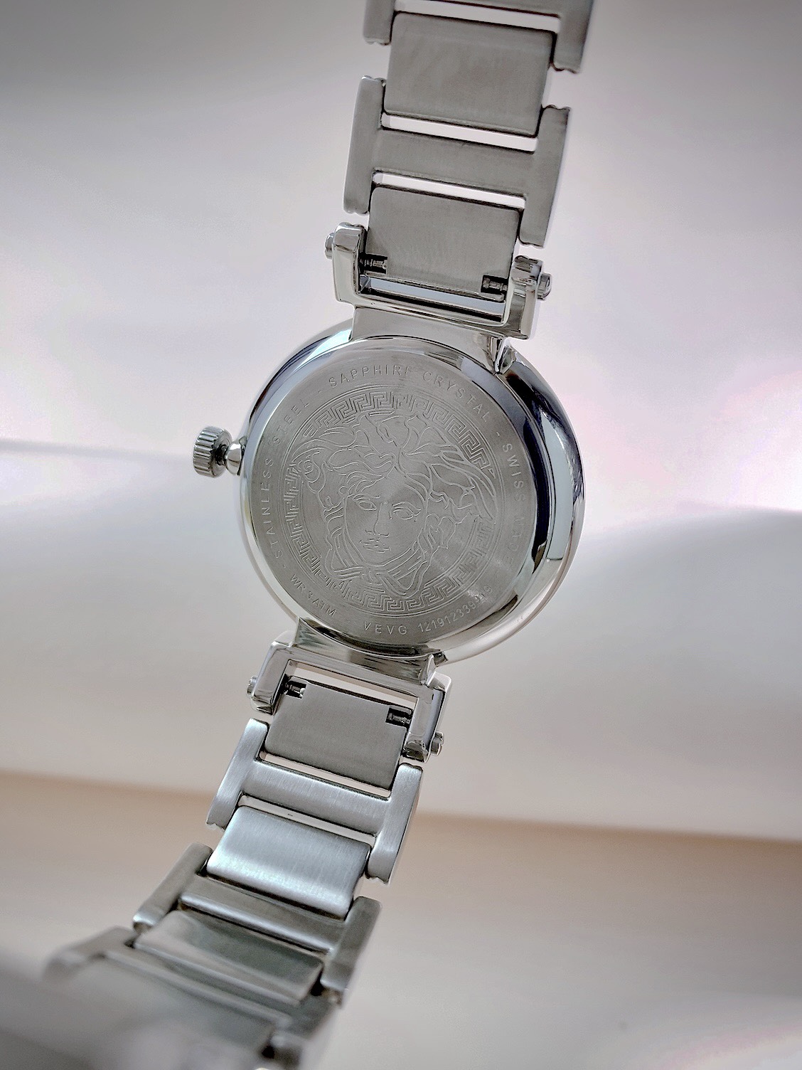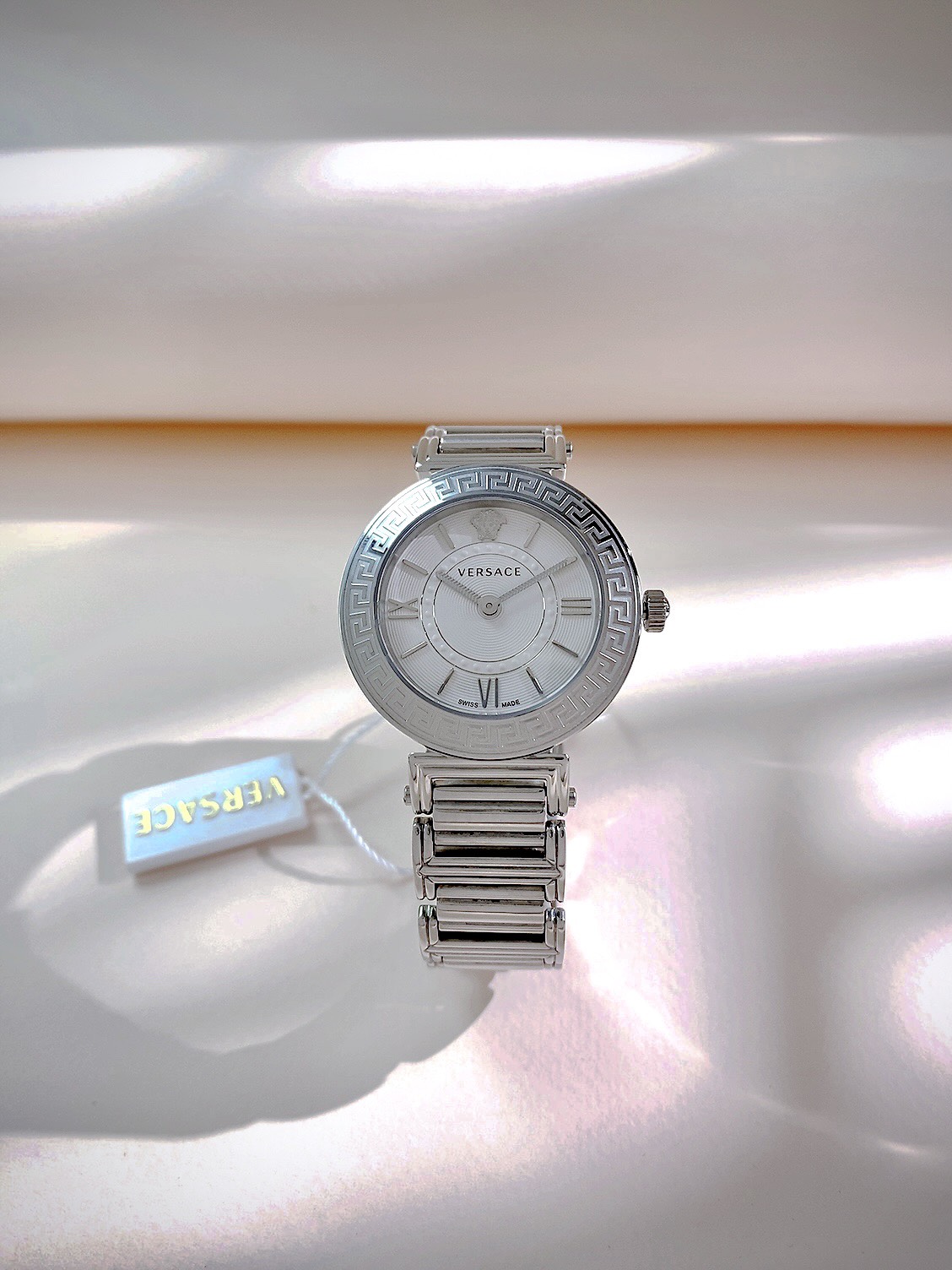 Đồng hồ Versace Tribute nữ mặt trắng dây kim loại Rep 11 35mm