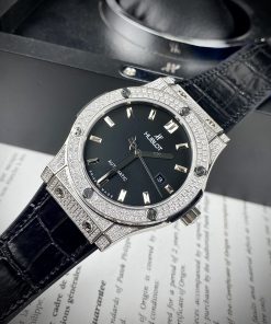 Đồng hồ Hublot nam đính đá full mặt và viền Super Fake Nhật 42mm