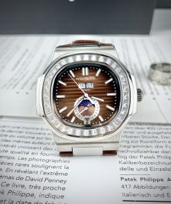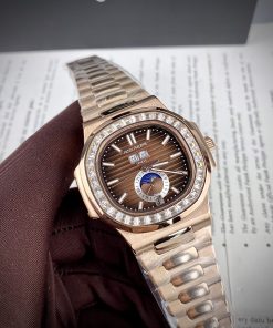 Đồng hồ Patek Philippe Nautilus màu vàng hồng mặt nâu đính đá 40mm