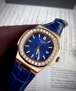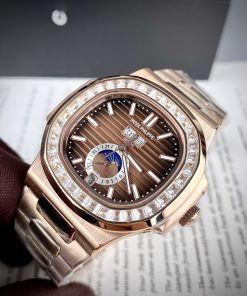 Đồng hồ Patek Philippe Nautilus màu vàng hồng mặt nâu đính đá 40mm