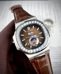 Đồng hồ Patek Philippe 5205R Fake 11 máy Nhật đính đá màu nâu 40mm
