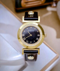 Đồng hồ Versace nữ siêu cấp Versace Vanity đính đá dây da màu đen 35mm