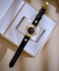 Đồng hồ Versace Glam Chic nữ dây da đen mặt vàng gold Like Auth 30mm