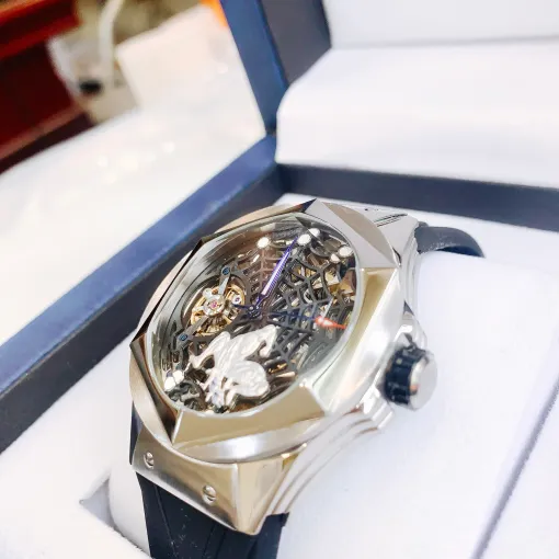 Đồng hồ Hanboro nam chính hãng máy lộ cơ mặt kính cong